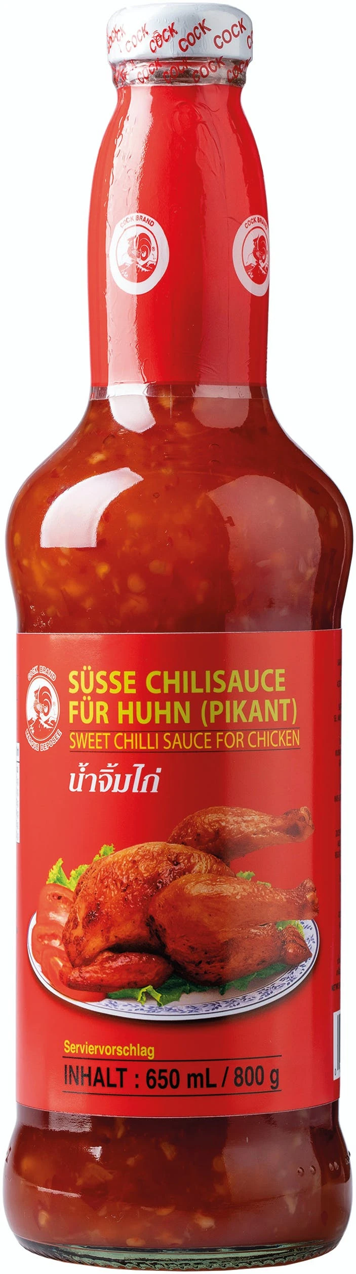 Die Metro Chef Thai Sweet Chilisauce ist ein servierfertiges Produkt für die thailändische Küche. Der pikant süße Charakter ist optimal auf den Geschmack von Hühnerfleisch abgestimmt. Die Soße mit 23% Chilischoten und Knoblauch verleiht Ihren Hühnergerichten die typische südostasiatische Note. Zu Hühnchen undasiatischem Gemüse im Wok gegeben lassen sich mit der Sauce schnell echte Gaumenfreuden bereiten. Auch für Chicken Wings mit Reis oder Frühlingsrollen mit Huhn passt die pikant süße Chilisoße von METRO Chef hervorragend. Sie ist hier in der Flasche mit 720 ml Inhalt erhältlich.
