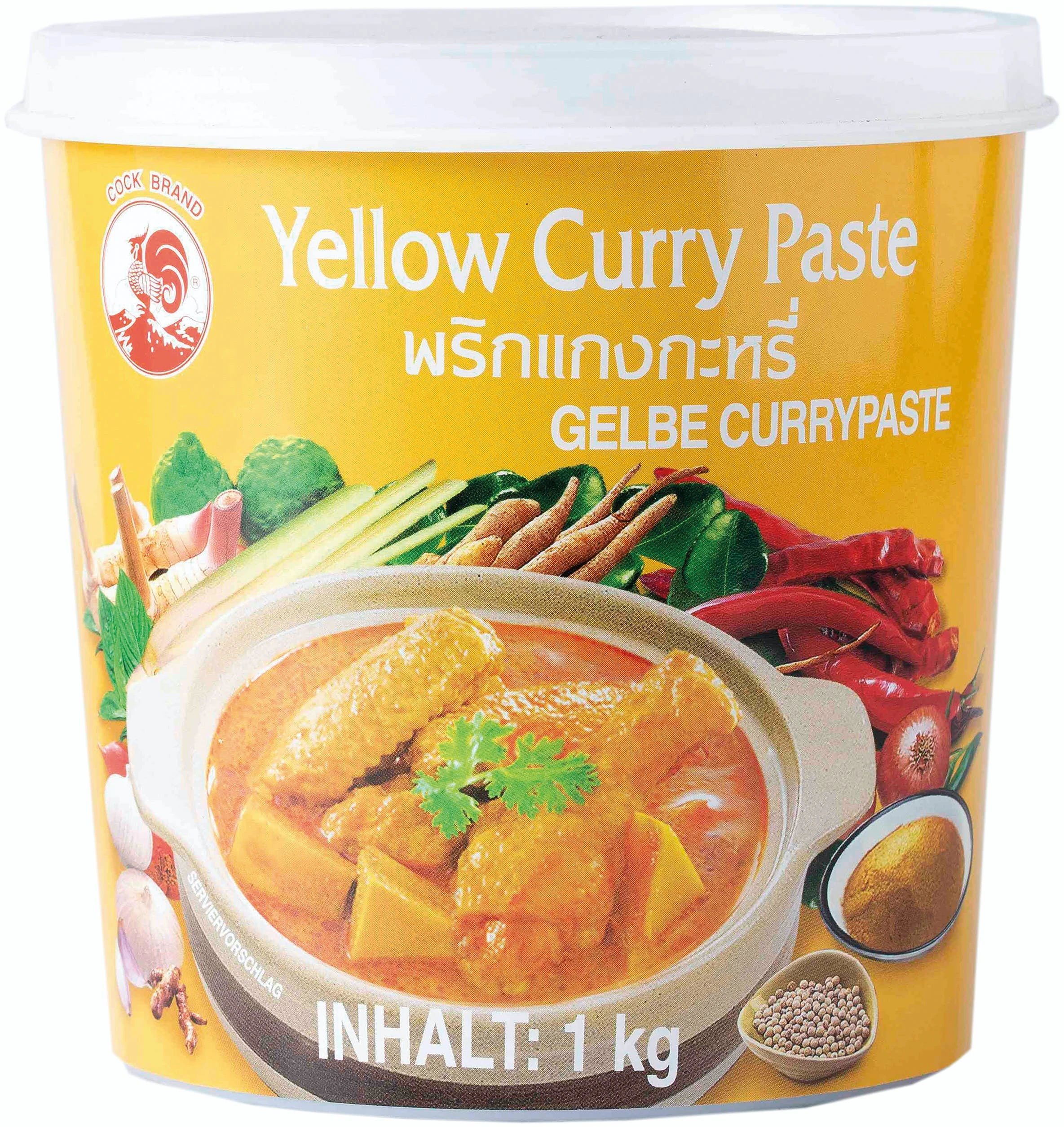 Die rote Currypaste von Cock aus Thailand ist ein Muss für die echte asiatische Küche. Und ohne Geschmacksverstärker! Insbesondere für die klassischen indischen oder thailändischen Curry-Gerichte mit Reis perfekt geeignet, um ihnen das gewisse scharfe Etwas zu verleihen. Kombiniert mit Kokosnussmilch ergibt die Currypaste eine feurige, würzige, jedoch immer unwiderstehliche Wok-Sauce. Auch zum Marinieren von Fleisch sehr zu empfehlen!