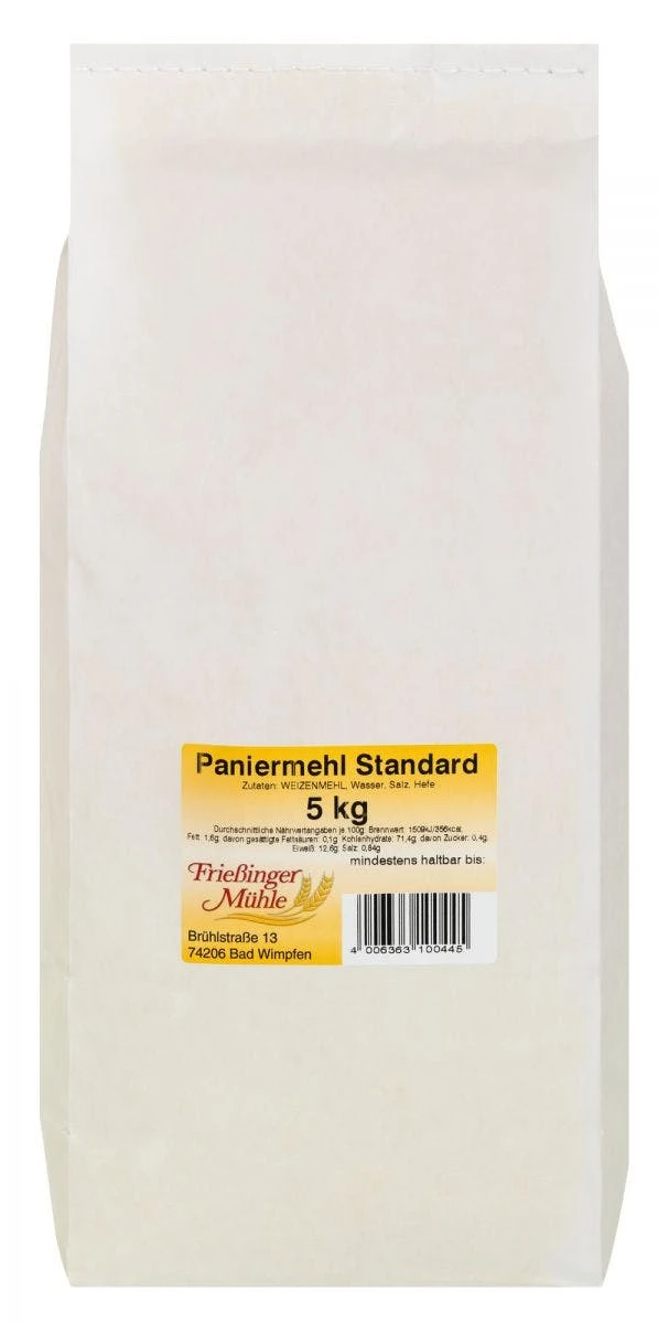 Qualitativ hochwertiges Paniermehl zum panieren von Fisch, Fleisch und Gemüse. Vielseitig anwendbar auch als Zutat für Backwaren oder Süßspeisen.