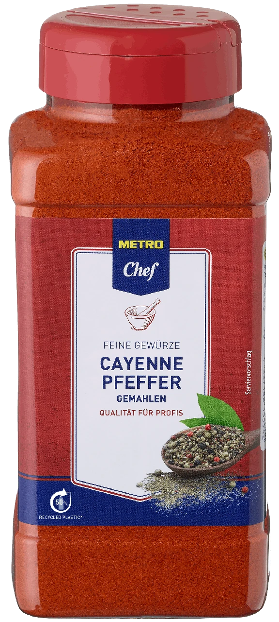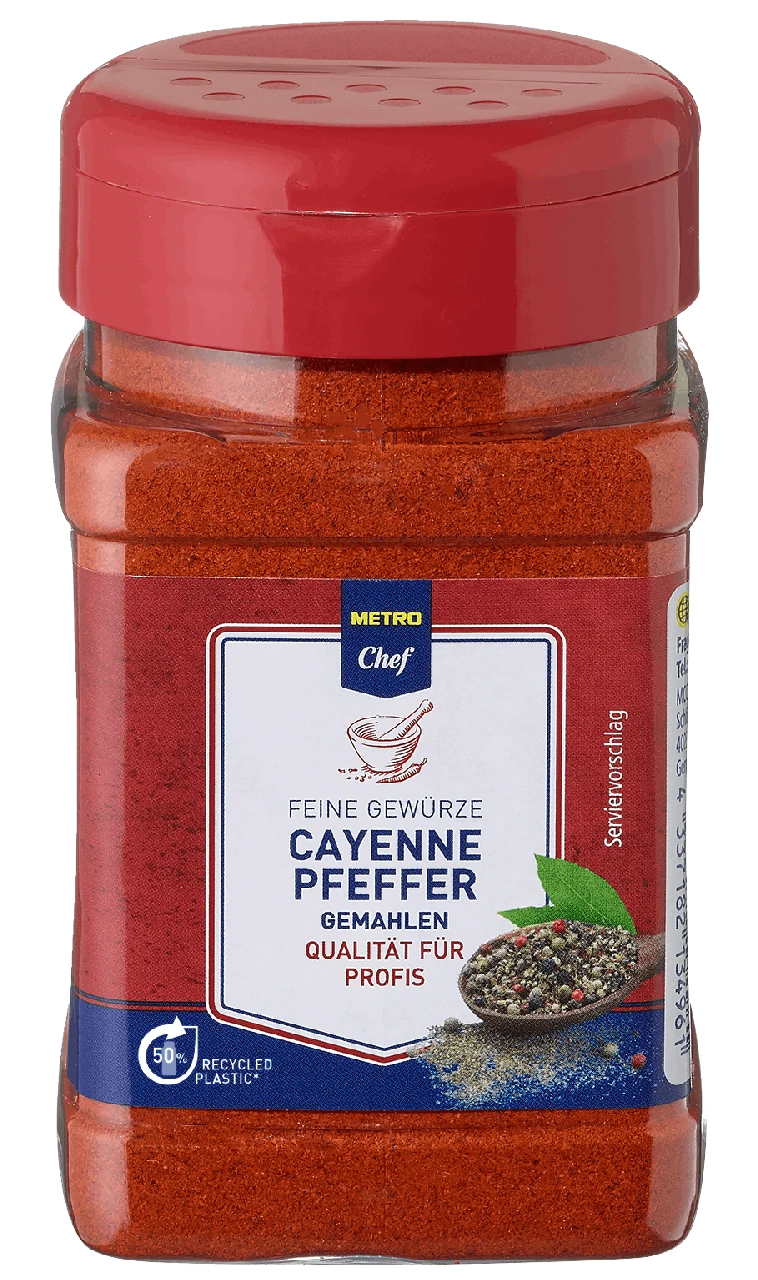 Eine fein gemahlene Chilisorte namens Cayenne liefert ein ausgesprochen feuriges orangefarbenes Pulver mit einem schwach bitteren und rauchigen Akzent: den nach der Hauptstadt von Französisch-Guayana (Südamerika) benannten Cayenne-Pfeffer. Kochen mit Cayenne-Pfeffer: Cayenne-Pfeffer verlangt Fingerspitzengefühl bei der Dosierung, er bringt rund ungefähr doppelt so viel Schärfe wie Peperoni oder Peperoncini. Für einen scharfen Hauch an einem Gericht für 4-6 Personen reicht bereits eine Messerspitze. Profiköche nutzen eine minimale Prise des beliebten Scharfmachers, um den Geschmack der Speisen im Mund zu intensivieren – beispielsweise von Fleischragouts, Braten, pikanten Saucen und Dips. Typische Gerichte mit Cayenne-Pfeffer: Cayenne-Schärfe befeuert unter anderem die beliebte Tabasco-Sauce und die asiatische Würzpaste Sambal Oelek. Keinesfalls fehlen darf Cayenne im klassischen Chili con Carne und in diversen Spezialitäten der indonesischen, indischen und chinesischen Küche. Tipp vom Kochprofi: Eine winzige Spur Cayenne-Pfeffer peppt ein dunkles Schokoladendessert perfekt auf.