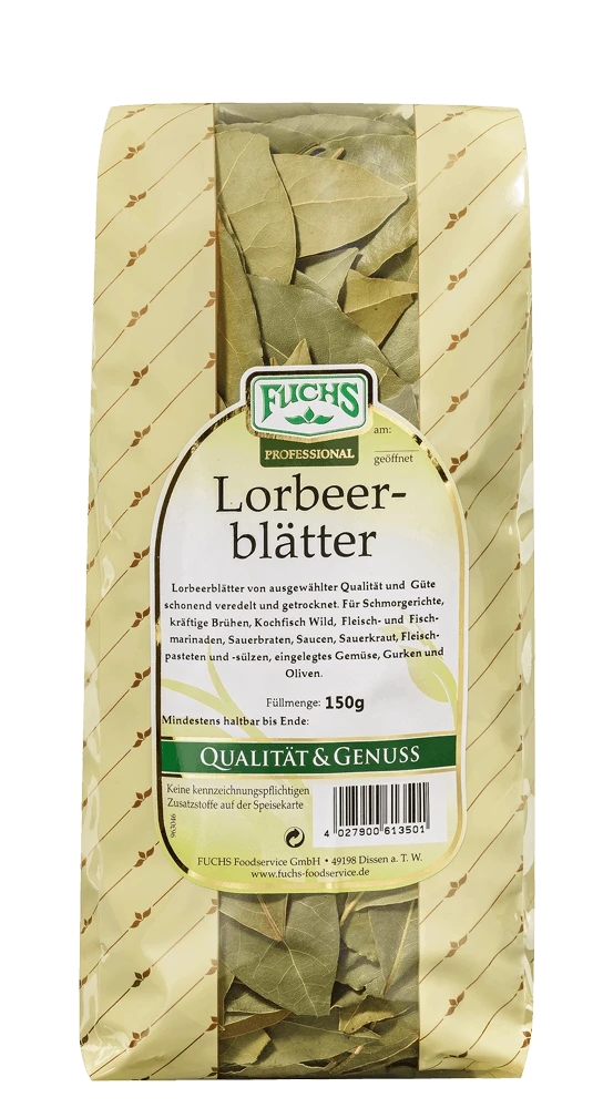 Im Gegensatz zu manch anderen Kräutern oder Gewürzen kommt Lorbeer erst getrocknet so richtig zur Geltung. Frische Lorbeerblätter schmecken nämlich ausgesprochen bitter, das Trocknen macht sie jedoch sanfter und dadurch zu einem idealen Küchengewürz für alles, das einen herb-würzigen und leicht bitteren Geschmack zur Abrundung benötigt. Kochen mit Lorbeer: Lorbeer braucht ein wenig Zeit, um sich richtig zu entfalten. Kochen Sie die getrockneten Blätter daher immer eine Weile mit oder lassen Sie mit Lorbeer verfeinerte kalte Speisen mindestens mehrere Stunden lang durchziehen. Typische Gerichte mit Lorbeer: Lorbeerblätter gehören vor allem in deftige Gerichte. Die Franzosen schätzen die nicht zum Verzehr geeigneten Blätter als unverzichtbaren Bestandteil des Bouquet garni, einem würzigen Kräutersträußchen zum Aromatisieren von würzigen Braten und Fonds. Hierzulande aromatisiert Lorbeer vor allem Sauerbraten, Wildgerichte, Fischmarinaden, Brühen und sauer Eingelegtes – in der Mittelmeerküche verfeinern die getrockneten Blätter auch Lammgerichte oder die klassische Bolognese-Sauce.