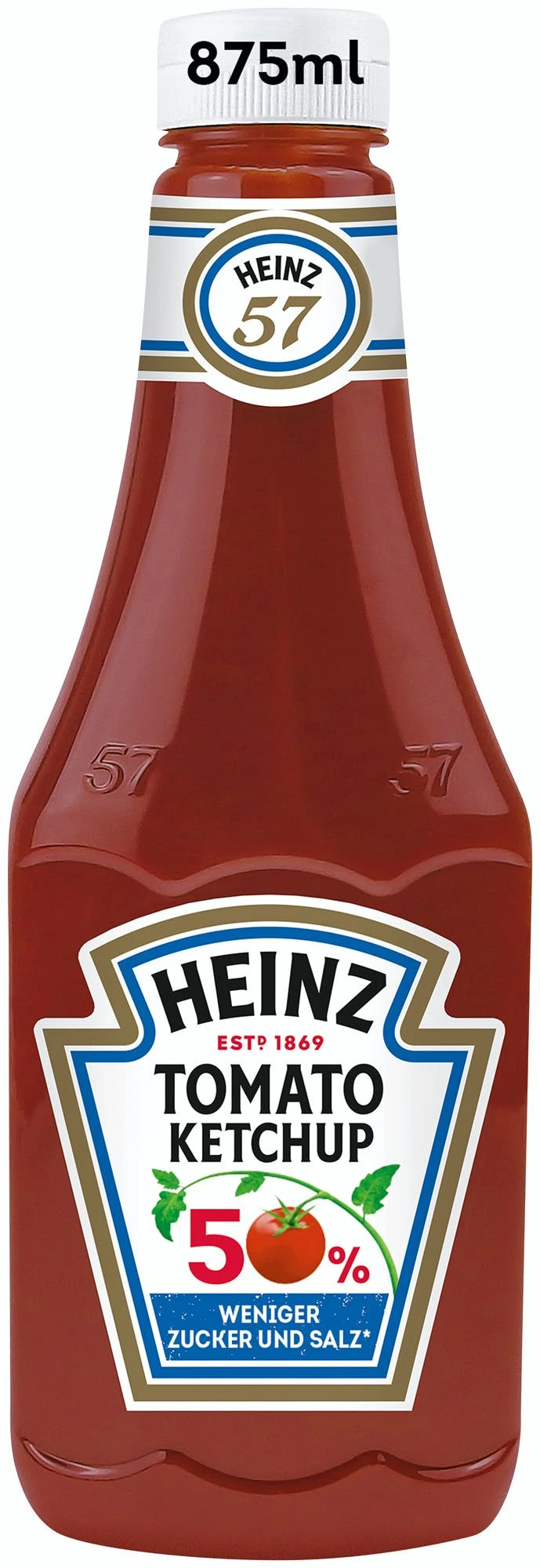 Das Originalrezept von Heinz Tomato Ketchup, mit 50% weniger Zucker und Salz, aber demselben großartigen Geschmack. Purer Genuss mit der natürlichen Süße aus Stevia und 100% unverwechselbarem Heinz Tomaten Geschmack.