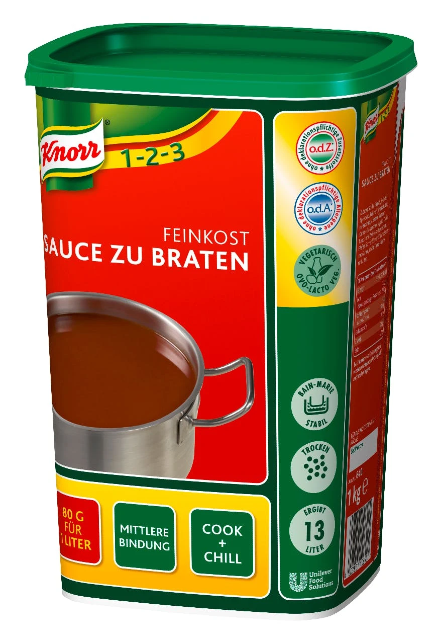 Die Delikatess Bratensauce von Knorr ist ideal für die schnelle Zubereitung von braunen Saucen und passt gut zu Fleischgerichten und veganen Gerichten.