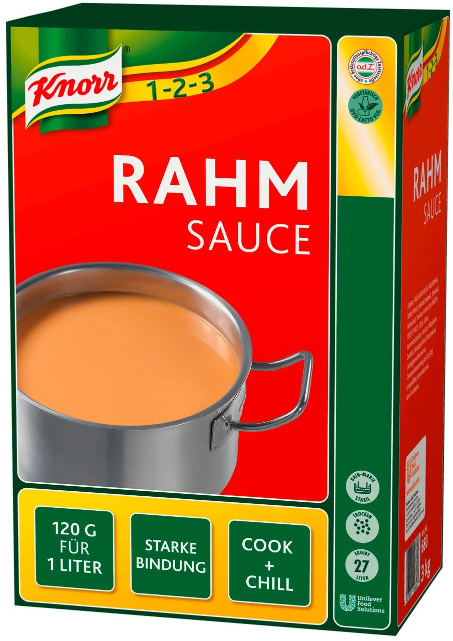 Von Knorr 1-2-3 erhalten Sie mit der Trockenmischung eine ideale Grundlage zur Herstellung einer Delikatess Sauce zu Braten. Die Großpackung enthält 3 kg Trockenmischung, die fertig zubereitet 32,5 Liter Sauce ergibt. Die Sauce mit mittlerer Bindung ist Bain-Marie stabil und Cook + Chill fähig.