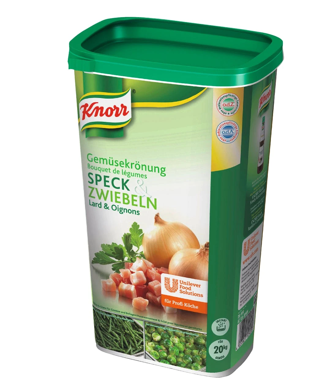 Knorr Gemüsekrönung Speck & Zwiebeln hebt den Geschmack von Gemüse hervor und eignet sich hervorragend für herzhafte Gemüsesorten wie Bohnen, Rosenkohl, Weißkohl, Rotkohl…