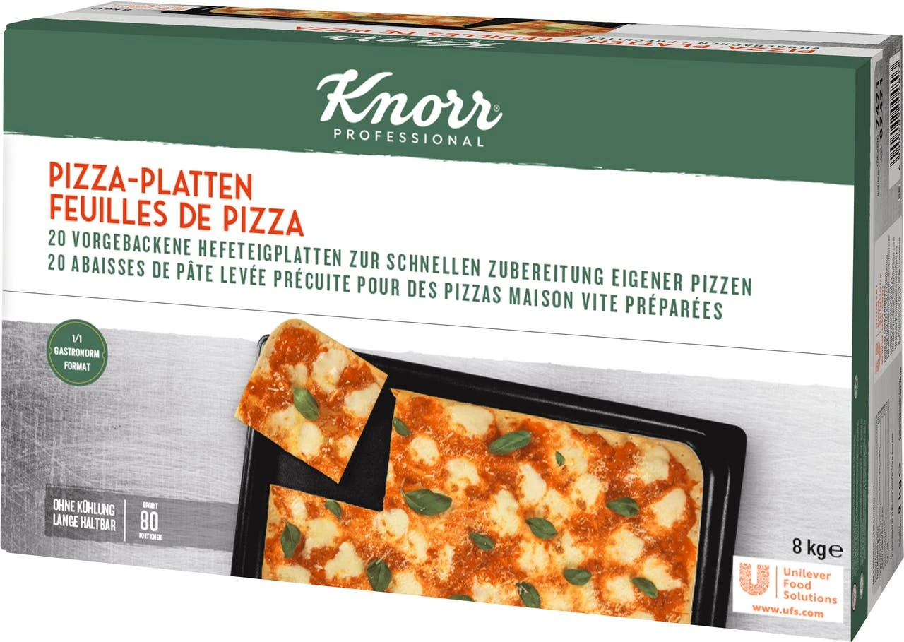 Aus frischem, vorgebackenem Hefeteig. Ideal zur schnellen Zubereitung eigener Pizzen. Jeweils 2 Platten in einer Folie verpackt. Die „Pizza-Platten“ sind schnell belegt und flexibel einsetzbar – z.B. auch für Speckkuchen.