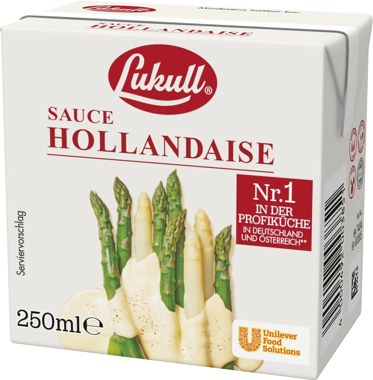 Für den leichteren Genuss: Die Lukull Sauce Hollandaise balance verfeinert frisches Gemüse und vor allem Spargel. Die Sauce verspricht bei gerade mal 15 Prozent Fett einen hervorragenden Geschmack sowie eine cremige Konsistenz. Zudem ist die leckere Sauce leicht erwärmbar, kochstabil und variierbar z.B. mit Zitrone und Kräutern.