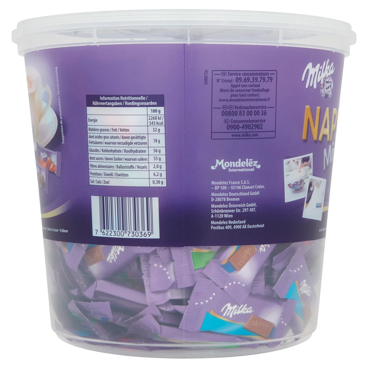 Eine süße Begleitung zum Kaffee: Milka Naps sind einzeln verpackte Schoko-Spezialitäten, die Sie Ihren Gästen z.B. zum Kaffee reichen können. In der Großpackung erhalten Sie 1 kg der leckeren Naps. Bestens geeignet als Wurfmaterial für Karneval / Fasching