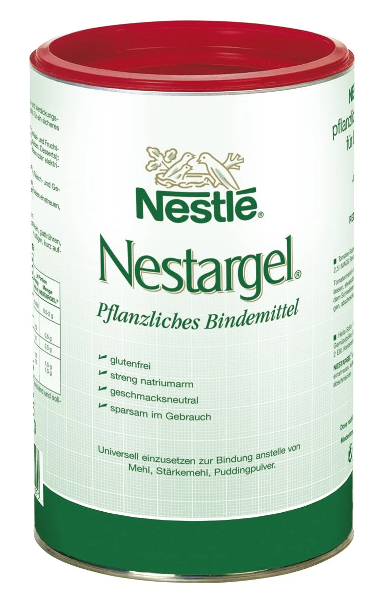 Nestargel ist ein pflanzlicher Binder und geeignet sich daher ideal für vegetarische und vegane Gerichte. Das Pulver besteht aus Johannisbrotkernmehl und ist aufgrund seines neutralen Geschmacks vielseitig anwendbar. Egal ob es sich um süße, pikante, warme oder kalte Speisen handelt, Sie können das Bindemittel sowohl zum Andicken von Saucen, Suppen, Eintöpfe, Breien, Grützen, Getränken, Schlagsahne als auch Desserts verwenden. Zudem können Sie Nestlé Nestargel auch als Emulsion zum Einweichen von harten Lebensmitteln, wie Brot oder Keksen nutzen. Perfekt geeignet also für Personen mit Kau- und Schluckbeschwerden.