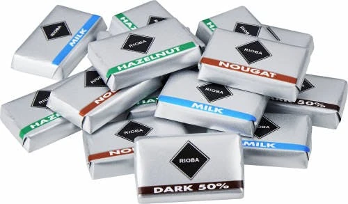 Einzelportionen bestehend aus einer Mischung aus Edelbitter-, Nougat-, Haselnuss- und Milchschokolade. Begeistern Sie Ihre Kunden mit der Rioba Vielfalt. Von aromatischem Kaffee, trendigem Sirup oder Gebäck bis hin zu Artikeln in praktischen Portionsgrößen, wie Milch-& Zuckerportionen und Einweg Bechern. Rioba mit rund 100 Artikeln die professionelle Komplettlösung für Cafés und Bars zu einem top Preis-Leistungsverhältnis.