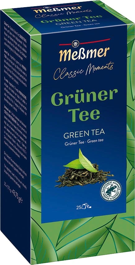 TEEKANNE Green Tea ist ein handgepflückter grüner Blatt-Tee(Chun-Mee) aus dem Mutterland des Tees, China. Angenehm fein-herb und duftigfrisch im Geschmack, mit honig-gelber Aufgussfarbe.‘