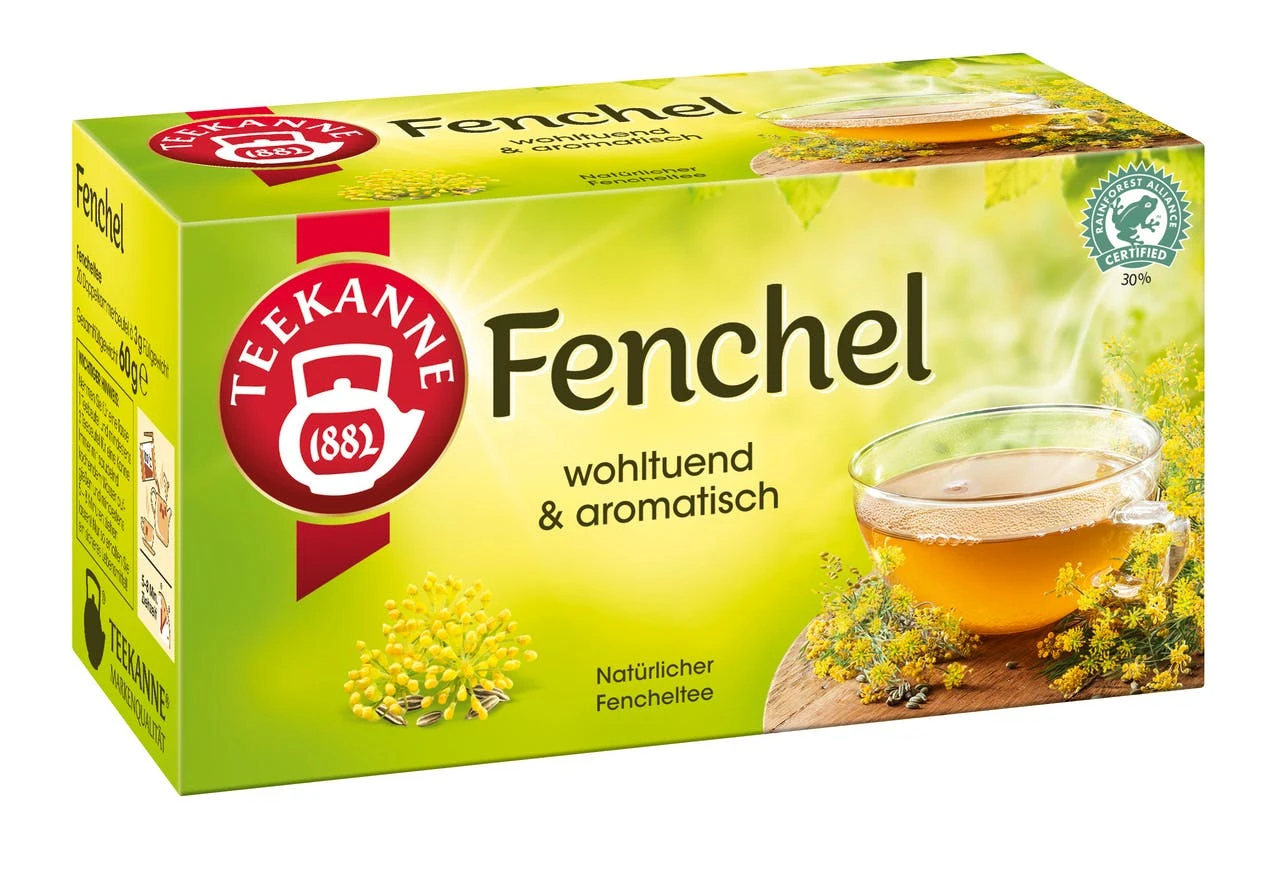 Träume Dich mit dem TEEKANNE Fenchel-Tee in Deiner Tasse auf eine herrlich duftende Kräuterwiese, während Dir der Geruch des wohlbekannten Krauts in die Nase steigt. Mit jedem Schluck des TEEKANNE Fenchel-Tees genießt Du das intensive aroma der sorgfältig zerriebenen Fenchelsamen und des Fenchelöls.